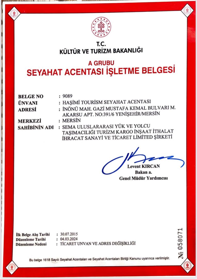 Türkiye Seyahat Acentaları Birliği Tursab Belgesi